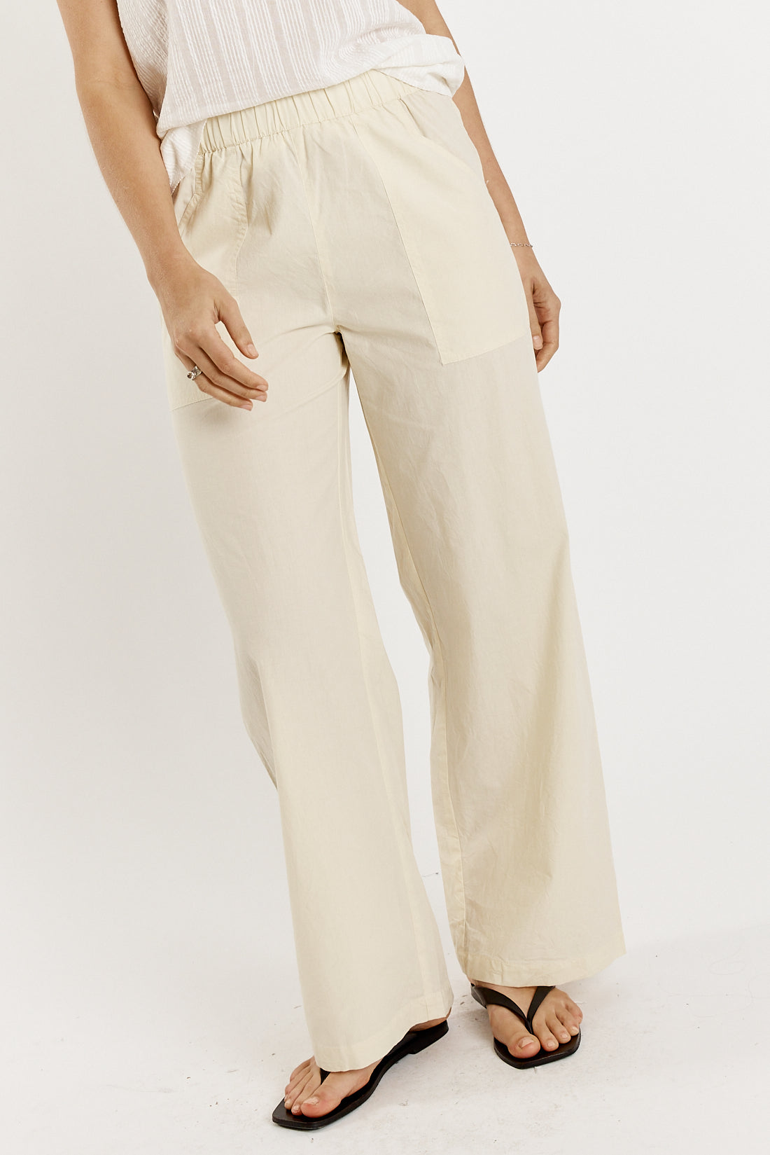 Crafted from 100% cotton poplin, the Giliann Casa Pant in Butter offers a refined silhouette with a sophisticated diagonal pocket detail.