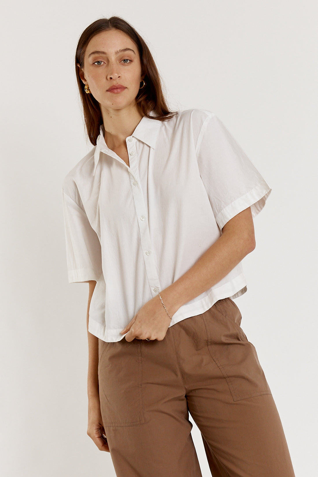 Crafted from 100% cotton poplin, the Giliann Loire Shirt in White offers a timeless silhouette with its classic shirt shape and short sleeves. Featuring a button-through front, this shirt combines refined simplicity with breathable comfort, making it an elegant choice for effortlessly polished looks.